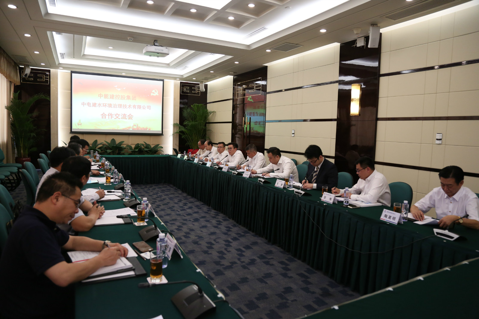 中電建水環境治理技術有限公司副董事長、總經理、黨委副書記鄭久存,黨委書記、副總經理、水環境產業園領導小組組長孔德安;中能建基金公司副總裁陳克生,中能建香港資本有限公司總裁助理王潛,廣東中能建投資有限公司投資總監任偉,中能建投資管理有限公司副總經理陳繼偉,中能建云南投資有限公司總經理吳建國等共同出席簽約儀式。