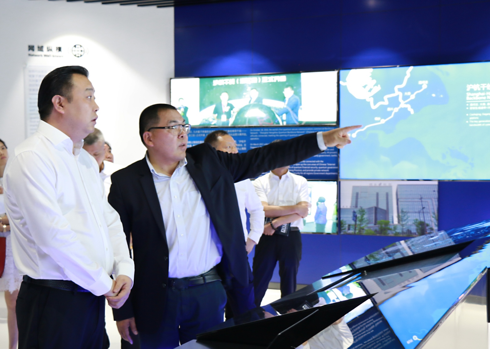 王莉明董事長(zhǎng)在量子科技展示中心聽(tīng)取匯報(bào)