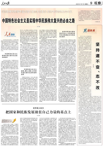 “堅持中國特色社會主義”是黨的二十大報告概括的中國式現(xiàn)代化的本質(zhì)要求之一。中國特色社會主義是實現(xiàn)中華民族偉大復(fù)興的必由之路。堅持中國特色社會主義,是中國式現(xiàn)代化同西方現(xiàn)代化的根本區(qū)別。中國特色社會主義道路符合中國實際、反映中國人民意愿、適應(yīng)時代發(fā)展要求。堅定不移走這條道路,才能確保以中國式現(xiàn)代化全面推進中華民族偉大復(fù)興,實現(xiàn)第二個百年奮斗目標。本期觀察版圍繞這一主題進行闡述。